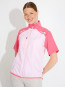 Lanark stretch windshirt is made of a thin, wind proof fabric with mechanical stretch that is made in re-cycled polyester. Main body is allover printed with a transparent pattern. Sleeves and shoulders in solid contrast fabric. Fullzip at front , one chest pocket with zipper. Elastic binding at bodybottom. Abacus logos at right lower bodybottom and at centerback.