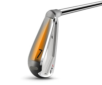 Med en tungstensvægt i tåen på de lange jern (4-7) bliver køllehovedet stabilt i slagøjeblikket og kan levere lige slag.